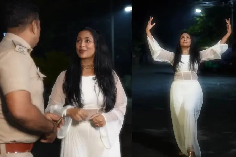 നവ്യാ നായര്‍ കേന്ദ്രകഥാപാത്രമായി തിയേറ്ററുകളിലെത്തിയ പുതിയ ചിത്രമായ ‘പാതിരാത്രി’ എന്ന സിനിമയുടെ പ്രൊമോ വീഡിയോ ഷൂട്ട് ചെയ്യുന്നതിനിടെ നടിയെ പോലീസ് പിടിക്കുന്ന വീഡിയോ ആണ് ഇപ്പോൾ സോഷ്യൽ മീഡിയയിൽ ശ്രദ്ധ നേടുന്നത്. റത്തീന സംവിധാനം ചെയ്ത ക്രൈം ത്രില്ലര്‍ ഡ്രാമ ചിത്രമായ ‘പാതിരാത്രി’യുടെ പ്രൊമോ വീഡിയോ വെള്ളിയാഴ്ച രാത്രിയോടെ നവ്യ നായരുടെ ഇന്‍സ്റ്റാഗ്രാം വഴിയാണ് പങ്കുവെച്ചത്.
