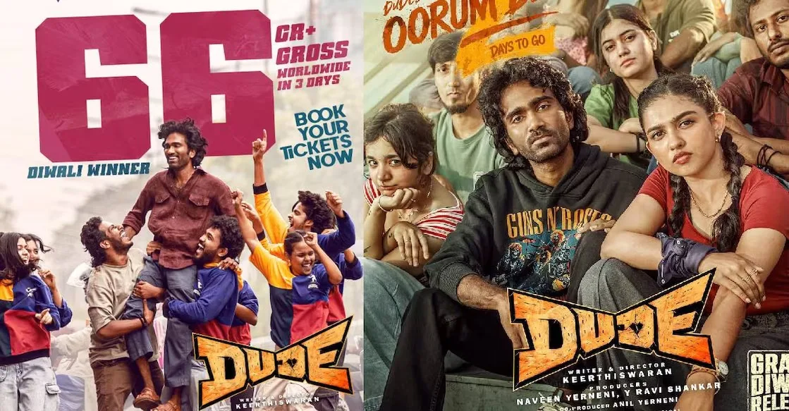 ലോകമെമ്പാടുമുള്ള ദീപാവലി റിലീസുകളിൽ ഒന്നാം സ്ഥാനത്തുള്ള ഇന്ത്യൻ സിനിമയായിരിക്കുകയാണ് ‘ഡ്യൂഡ്’.ആദ്യ ദിനം ചിത്രത്തിന്റെ വേൾഡ് വൈഡ് കലക്ഷൻ 22 കോടിയായിരുന്നു. തിയറ്ററുകൾതോറും പ്രായഭേദമന്യേ ചിത്രം ഏറ്റെടുത്തിരിക്കുകയാണ് എന്നാണ് റിപ്പോർട്ട്. കോമഡിയും ഇമോഷനും ആക്ഷനും പ്രണയവും കുടുംബബന്ധങ്ങളും സൗഹൃദവും എല്ലാം കോർത്തിണക്കിയൊരു ടോട്ടൽ പാക്കേജ് ആണ് ‘ഡ്യൂഡ്’ എന്ന് പ്രേക്ഷകർ പറയുന്നു. ചിത്രത്തിൽ അഗൻ എന്ന കഥാപാത്രമായി പ്രദീപ് രംഗനാഥനും കുറൽ എന്ന കഥാപാത്രമായി മമിത ബൈജുവും മത്സരിച്ചഭിനയിച്ചിരിക്കുകയാണ്. അതോടൊപ്പം ഇതുവരെ കാണാത്ത വേഷപ്പകർച്ചയിൽ മന്ത്രി അതിയമാൻ അഴഗപ്പൻ എന്ന കഥാപാത്രമായി ശരത് കുമാറും ചിത്രത്തിൽ ഏവരുടേയും ഇഷ്ടം നേടിയിട്ടുണ്ട്.