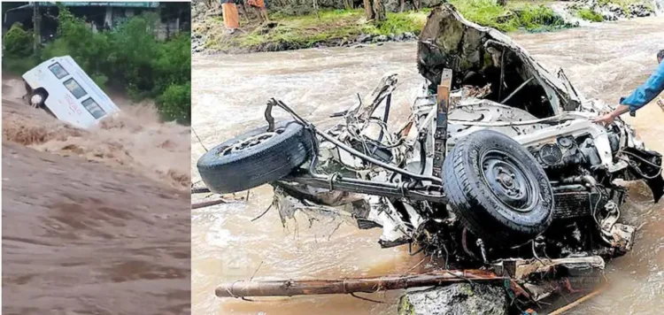 കൂട്ടാര്‍ സ്വദേശി കേളന്‍ത്തറയില്‍ ബി റെജിമോന്റെ ഭാര്യ അബിജിതയുടെ പേരിലുള്ള ട്രാവലറാണ് ഒഴുകിപ്പോയത്. പാലത്തില്‍ നിന്ന് പുഴയിലേക്ക് വീണ വാഹനം, വീണിടത്തുനിന്ന് 300 മീറ്ററോളം അകലെ നിന്നാണ് കണ്ടെത്തിയത്.