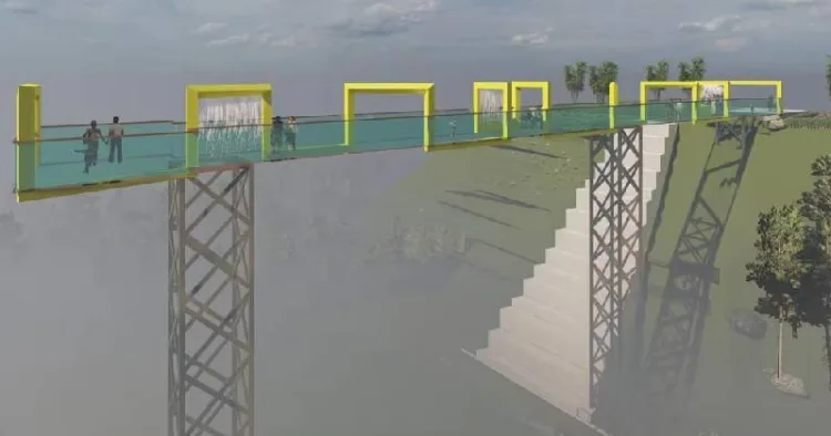 70 അടി ഉയരവും 52 മീറ്റർ നീളവുമുള്ള പാലം, 1.25 കോടി ചെലവഴിച്ചാണ് നിർമിച്ചത്. കഴിഞ്ഞ വർഷം ഫെബ്രുവരിയിലാണ് നിർമാണം പൂർത്തിയാക്കിയത്. എന്നാൽ, പാലം തുറക്കാൻ നിശ്ചയിച്ചതിനു മുൻപ് തന്നെ വിള്ളലുണ്ടായി. കൃത്രിമ മഴ, മൂടൽമഞ്ഞ്, ലൈറ്റുകൾ എന്നിവ ഒരുക്കിയിട്ടുണ്ട്. ഒരേസമയം 20 പേർക്ക് കയറാൻ പറ്റുന്ന തരത്തിലാണ് നിർമാണം.