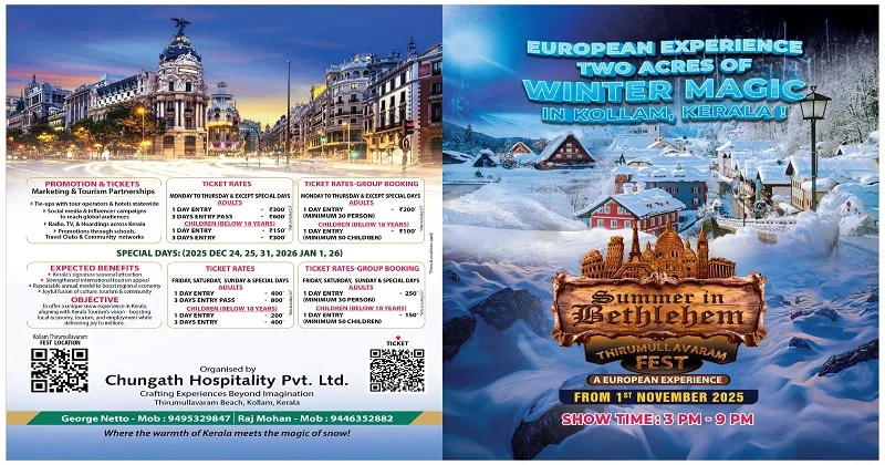 ചുങ്കത്ത് ജ്വല്ലറിയുടെ ‘യൂറോപ്പ് എക്സ്പീരിയന്‍സ് സെന്റര്‍’: കൊല്ലം തിരുമുല്ലവാരം ബീച്ചില്‍; നവംമ്പര്‍ ഒന്നുമതുല്‍ മൂന്നുമാസം വരെ നീണ്ടു നില്‍ക്കും