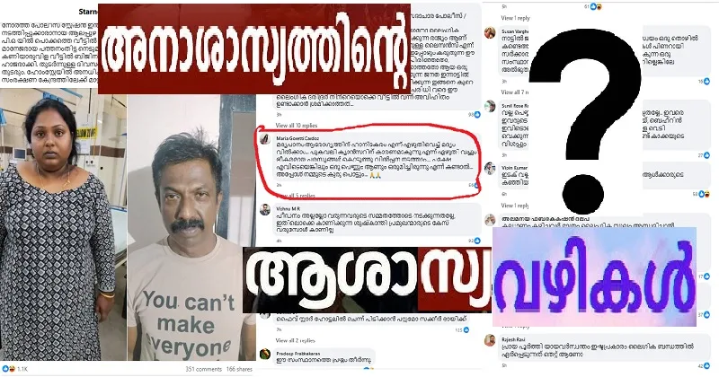 എന്നാല്, നേരം ഇരുട്ടുമ്പോള് മാന്യന്മാര് തേടി നടക്കുന്നത് ഇത്തരം ഇടങ്ങളാണെന്ന് പറയാതെ വയ്യ. സോഷ്യല് മീഡിയയുടെ വരവോടെ ഇത്തരക്കാര്ക്കെതിരേ ശക്തമായി പ്രതികരിക്കാന് കഴിയുന്നുണ്ടെന്നതാണ് വസ്തുത. 10 വീടിന് ഒരു വീട് വച്ച് എന്ന തോതില് ഹോം സ്റ്റേ നടത്തുന്നുണ്ട് ,Fresh up, മുതലായവ മണ്ണഞ്ചേരിയുടെ പടിഞ്ഞാറു ഭാഗങ്ങളില് ഉണ്ട്. അവിടെയൊക്കെ പെണ്കുട്ടികളെ താമസിപ്പിച്ച് ഇതു തന്നെയാണ് പരിപാടി എന്നാണ് പോസ്റ്റിനു താഴെ വന്ന ഒരു കമന്റ്. ’80 k അക്കയൊക്കെ വെബ്സൈറ്റ് വഴി നടത്തുന്നത് പിടിക്കാന് വിറക്കും സാറന്മാര്. അതെസമയം ബസ്റ്റാന്ഡില് ഒരു നേരത്തെ അന്നത്തിന് തുണിയഴിക്കുന്നവരുടെ മടിക്കുത്തില് പിടിക്കാന് ഒരു മടിയും കാണിക്കത്തും ഇല്ല. ഇതാണ് കേരള മോഡല്’ എന്നാണ് മറ്റൊരാളുടെ കമന്റ്.