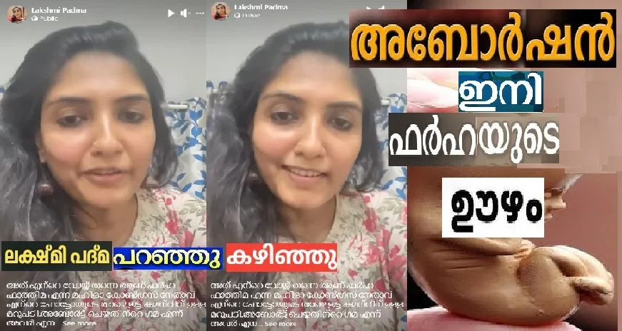 അബോര്ട്ട് ചെയ്തതിന്റെ ഗമയല്ല എന്ന് ലക്ഷി വീഡിയോയില് മരുപടി പറഞ്ഞിട്ടുണ്ട്. ഇനി അഴര് അബോര്ട്ട് ചെയ്തിട്ടുണ്ടോ എന്ന് അന്വേഷിക്കുകയും വേണം. അതുകൊണ്ടാണ് ഫര്ഹാ ഫാത്തിമയുടെ ഇന് ബോക്സില് പോയി ചോദിച്ചതെന്നാണ് ലക്ഷ്മി പറയുന്നത്. എന്റെ ഫോട്ടോയുടെ താഴെ വന്ന് അബോര്ഷന് ചെയ്തതിന്റെ ഗമയാണോ എന്ന് ഫര്ഹാ ഫാത്തിമയ്ക്കില്ല. ഈ വിഷത്തില് ഒരു ക്ലാരിഫിക്കേഷന് വേണമെന്നു തോന്നിയതു കൊണ്ടാണ് പറയുന്നതെന്നും ലക്ഷ്മി പറഞ്ഞിട്ടുണ്ട്. ഇനി അറിയേണ്ടത്, ഫര്ഹാ ഫാത്തിമയുടെ കാര്യമാണ്. ഫര്ഹാ ഫാത്തിമ അബോര്ഷന് നടത്തിയിട്ടുണ്ടോ ?.