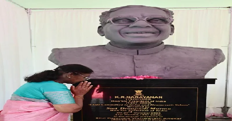 ഇന്ത്യൻ രാഷ്ട്രപതി ദ്രൗപദി മുർമു മുൻ രാഷ്ട്രപതി കെ.ആർ. നാരായണൻ്റെ അർദ്ധകായ പ്രതിമ തിരുവനന്തപുരത്തെ കേരള രാജ്ഭവൻ അങ്കണത്തിൽ അനാച്ഛാദനം ചെയ്തു. ദളിത് സമുദായത്തിൽ നിന്ന് രാഷ്ട്രപതി പദത്തിലെത്തിയ ആദ്യ വ്യക്തി എന്ന നിലയിൽ അദ്ദേഹത്തെ ആദരിക്കുന്നതിനായി സ്ഥാപിച്ച പ്രതിമ, മുൻ രാഷ്ട്രപതി രാം നാഥ് കോവിന്ദ്, ബിഹാർ ഗവർണർ ആരിഫ് മുഹമ്മദ് ഖാൻ, കേരള ഗവർണർ രാജേന്ദ്ര വിശ്വനാഥ് ആർലേക്കർ, മുഖ്യമന്ത്രി പിണറായി വിജയൻ എന്നിവരുടെ സാന്നിധ്യത്തിലായിരുന്നു അനാച്ഛാദനം എന്ന് ഔദ്യോഗിക വാർത്താക്കുറിപ്പ് അറിയിച്ചു.