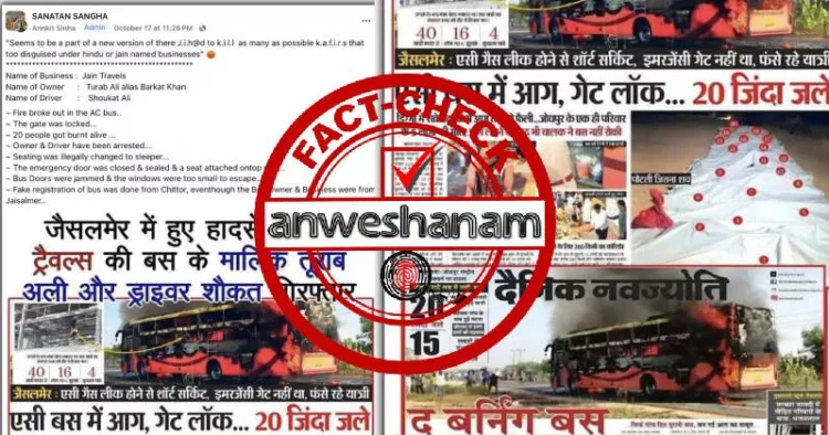 ഫാക്ട് ചെക്കിൽ മരിച്ചവരിൽ നിരവധി മുസ്ലീങ്ങളും ഉണ്ടെന്ന് കണ്ടെത്തി. ബസ് ജെയിൻ ട്രാവൽസിന്റേതല്ല, കെ.കെ ട്രാവൽസിന്റേതാണ്. എന്നിരുന്നാലും, ഉടമ തുരാബ് അലി എന്ന വ്യക്തിയായിരുന്നു. ജെയിൻ ട്രാവൽസ് വ്യത്യസ്തമായ ഒരു കമ്പനിയാണ്, ബസിന്റെ ബോഡി നിർമ്മിച്ച കമ്പനിയുടെ ഉടമയാണ് അതിന്റെ ഉടമ.