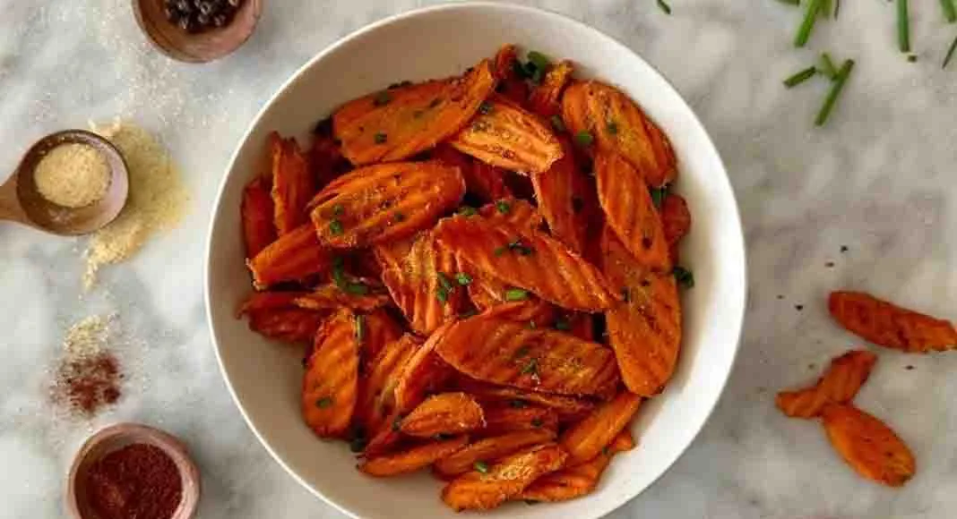 കാരറ്റ് തൊലി കളഞ്ഞ് നന്നായി കഴുകുക. ഇനി വൃത്തിയുള്ള ഒരു ടവൽ ഉപയോഗിച്ച് വെള്ളം കളഞ്ഞ് എടുക്കാം. കാരറ്റ് സ്ട്രിപ്പുകളായി നീളത്തിൽ മുറിക്കാം. സ്ട്രിപ്പുകൾ വളരെ നേർത്തതോ കട്ടിയുള്ളതോ ആകരുത്. അരിഞ്ഞ കാരറ്റിലേക്ക് ഓറഗാനോ, മുളകുപൊടി, ചാട്ട് മസാല, കുരുമുളക് പൊടി, വെളുത്തുള്ളി പൊടി, ഉപ്പ് എന്നിവ ചേർക്കുക. 1 ടേബിൾസ്പൂൺ എണ്ണയും ചേർത്ത് നന്നായി യോജിപ്പിക്കാം. ഓരോ സ്ട്രിപ്പും ഒരു ബേക്കിങ് ട്രേയിൽ വയ്ക്കുക, 180 ഡിഗ്രി സെൽഷ്യസിൽ 15-20 മിനിറ്റ് ബേക്ക് ചെയ്യുക. ബേക്ക് ചെയ്തുകഴിഞ്ഞാൽ, നിങ്ങൾക്ക് ഇഷ്ടമുള്ള മറ്റേതെങ്കിലും ഡിപ്സ് ഉപയോഗിച്ച് വിളമ്പുക.