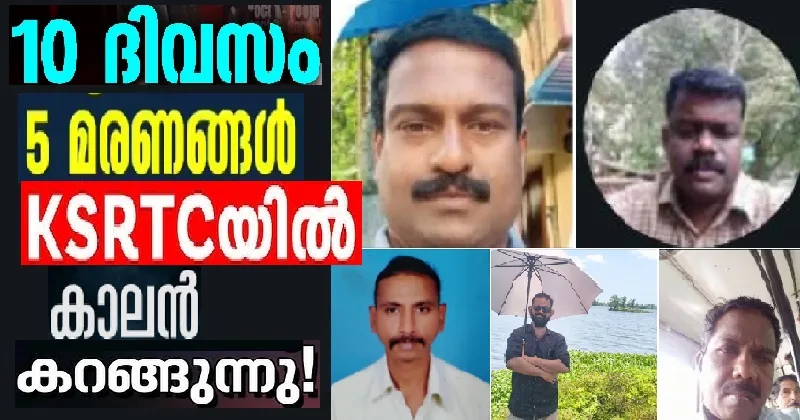പത്ത് ദിവസത്തിനുള്ളില്‍ മരിച്ച, നിലവില്‍ സര്‍വ്വീസിലുള്ള KSRTC ജീവനക്കാരാണ് ഇവര്‍.. എന്തുകൊണ്ടാണ്ട് KSRTC യില്‍ ഇത്രയും മരണങ്ങള്‍ നടക്കുന്നത്… 22000 ജീവനക്കാര്‍ മാത്രമുള്ളുത്താണ് ഈ മരണങ്ങള്‍… സര്‍ക്കാര്‍ എന്തുകൊണ്ടാണ് നിശബദമാകുന്നത്.. കുട്ടനാട്ടില്‍ പത്ത് താറാവ് ചത്താല്‍ പോലും അന്വേഷിക്കുന്നവര്‍ മനുഷ്യ ജീവന് പുല്ല് വില കല്പിക്കുന്നു… മന്ത്രി പഴയ കുപ്പി പെറുക്കി നടക്കുന്നു… ‘MD റീത്ത് വാങ്ങി രസിക്കുന്നു ‘