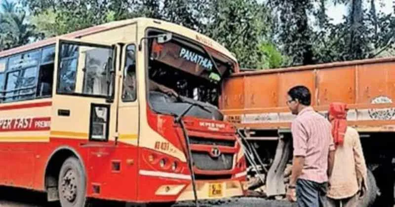 കാഞ്ഞങ്ങാട്: പാണത്തൂർ റോഡിൽ നിർത്തിയിട്ട് മരം കയറ്റുകയായിരുന്ന ലോറിയിൽ കെഎസ്ആർടിസി ബസ് ഇടിച്ച് അപകടം. ഇന്നലെ രാവിലെ 8 മണിയോടെ ബളാംതോട് മുസ്ലിം പള്ളിക്ക് സമീപം നടന്ന അപകടത്തിൽ ബസിന്റെ മുൻഭാഗം പൂർണ്ണമായും തകർന്നു.പാലയിൽ നിന്നും പാണത്തൂരിലേക്കു വരികയായിരുന്ന കെഎസ്ആർടിസി സ്വിഫ്റ്റ് ബസാണ് അപകടത്തിൽപെട്ടത്. അപകട സമയത്ത് ബസിൽ ഡ്രൈവറും കണ്ടക്ടറും മാത്രമായിരുന്നു ഉണ്ടായിരുന്നത്.