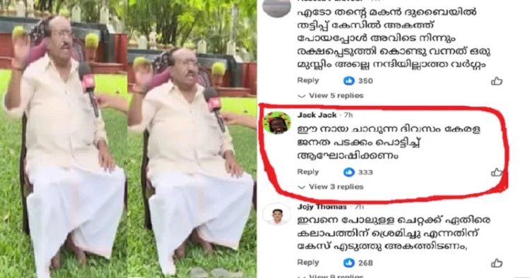 മുസ്ലീംഗങ്ങളുടെ ഇത്തരം നടപടിയെ ചോദ്യം ചെയ്യാന് ഇവിടുത്തെ രാഷ്ട്രീയ നേതാക്കള്ക്ക് ധൈര്യമില്ലെന്നും വെള്ളാപ്പള്ളി പറയുമ്പോള് എന്താണ് ഇതിനു കാരണമെന്നാണ് സോഷ്യല് മീഡിയ ചോദിക്കുന്നത്. ഈ നായ ചാവുന്ന ദിവസം കേരള ജനത പടക്കംപൊട്ടിച്ച് ആഘോഷിക്കുമെന്നാണ് ഒരാള് പോസ്റ്റിനു താഴെ കമന്റിട്ടിരിക്കുന്നത്. എടോ തന്റെ മകന് ദുബൈയില് തട്ടിപ്പുകേസില് അകത്തു പോയപ്പോള് അവിടെ നിന്നും രക്ഷപ്പെടുത്തി കൊണ്ടു വന്നത് ഒരു മുസ്ലീം അല്ലെ. നന്ദിയില്ലാത്ത വര്ഗം എന്നാണ് മറ്റൊരാള് കമന്റ് ബോക്സില് എഴുതിയിരിക്കുന്നത്.