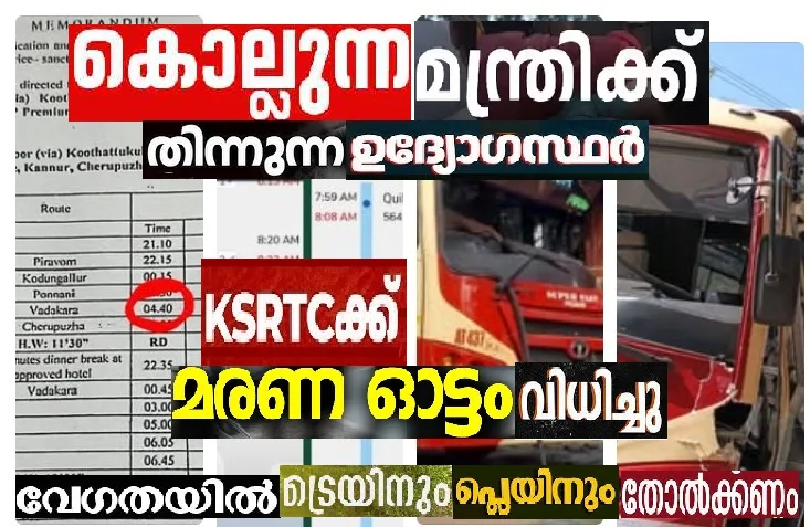 KSRTCയിലെ പച്ചപ്പരിഷ്ക്കാരിയാണ് ഗതാഗതമന്ത്രി കെ.ബി. ഗണേശ്കുമാര്. മാധ്യമങ്ങളും സോഷ്യല് മീഡിയ മാനേജ്മെന്റുകളും ഗണേശ സ്തുതി പാടുമ്പോള്, തൊഴിലാളികള് അനുഭവിക്കുന്ന ബുദ്ധിമുട്ടുകളും വിഷമങ്ങളും പറയാതെ പോകാനാകില്ല. മന്ത്രിയുടെ തന്ത്രവും കുതന്ത്രവുമൊക്കെ മൈക്കിലൂടെയും മറ്റു സംവിധാനങ്ങളിലൂടെയും ഇടയ്ക്കിടയ്ക്ക് പുറത്തു വരുന്നുണ്ട്. ഇത്തരം തന്ത്രങ്ങള് പറഞ്ഞു കൊടുക്കുന്ന കുറച്ചധികം കുബുദ്ധികള് KSRTCയിലുണ്ട്. എന്നാല്, മന്ത്രിക്ക് ബുദ്ധി ഉപദേശിച്ചു കൊടുക്കുന്ന കാപാലികരെ പുറത്തു കാണില്ല. എങ്കിലും ഈ ബുദ്ധി അല്പ്പം കടുത്തുപോയെന്നു പറയാതെ വയ്യ. KSRTC ബസുകളുടെ വേഗത മന്ത്രിയുടെ കാഴ്ചപ്പാടില് ട്രെയിനിനെയും പ്ലെയിനിനെയും കടത്തി വെട്ടണമെന്നാണ്. കേരളത്തിലെ നിരത്തുകളില് അത് സാധ്യമാക്കണമെന്നാണ് KSRTC പറയുന്നത്.
