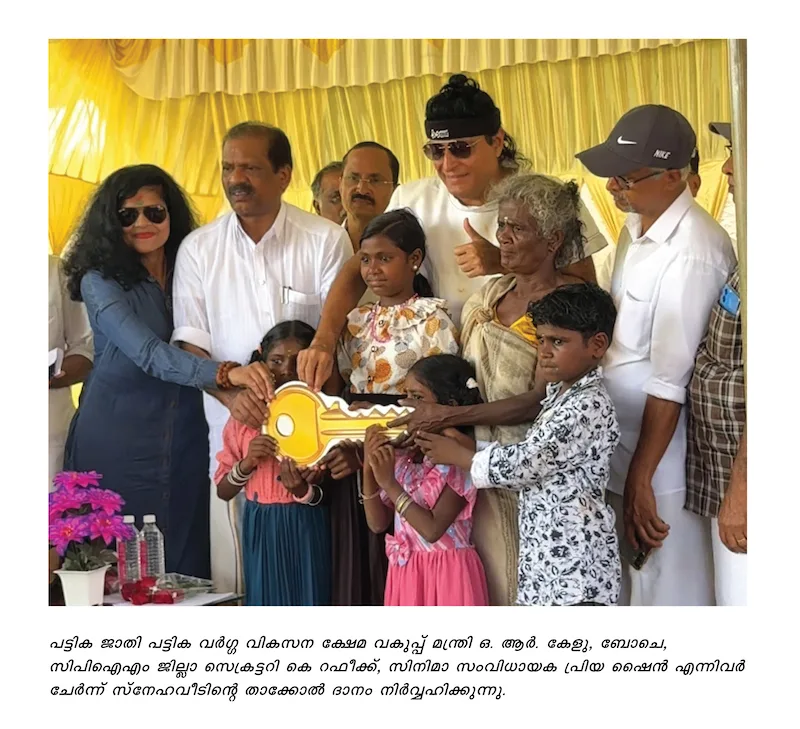 വയനാട്: അമ്മയെ കൊലപ്പെടുത്തി അച്ഛന് ജയിലില് പോയതോടെ അനാഥരായ കുഞ്ഞുങ്ങള്ക്കും രക്ഷിതാവായ മുത്തശ്ശിക്കും ഇനി അടച്ചുറപ്പുള്ള വീട്ടില് താമസിക്കാം. ദുരിതത്തിലായിരുന്ന 90 വയസ്സുകാരി കൊച്ചിയമ്മയ്ക്കും അഞ്ച് പേരക്കുട്ടികള്ക്കുമാണ് ബോചെയുടെ ധനസഹായത്തോടെ സിപിഐഎം അഞ്ചുകുന്ന് ലോക്കല് കമ്മിറ്റിയുടെ നേതൃത്വത്തില് സ്നേഹവീട് നിര്മ്മിച്ച് നല്കിയത്. പട്ടിക ജാതി പട്ടിക വര്ഗ്ഗ വികസന ക്ഷേമ വകുപ്പ് മന്ത്രി ഒ. ആര്. കേളു, 812 കി.മീ. റണ് യുനീക് വേള്ഡ് റെക്കോര്ഡ് ഹോള്ഡറും ലോകസമാധാനത്തിനുള്ള ഗിന്നസ് റെക്കോര്ഡ് ജേതാവുമായ ബോചെ, സിപിഐഎം ജില്ലാ സെക്രട്ടറി കെ റഫീക്ക്, സിനിമാ സംവിധായക പ്രിയ ഷൈന് എന്നിവര് ചേര്ന്ന് താക്കോല് ദാനം നിര്വ്വഹിച്ചു. കെല്ലൂര് പഴഞ്ചേരി കുന്നിലാണ് വീട് സ്ഥിതി ചെയ്യുന്നത്. കമ്മിറ്റി അംഗങ്ങളായ കാസിം പുഴക്കല്, മുകുന്ദന് പാട്ടിയം, എ. എന്. പ്രകാശന്, എ. ജോണി, കമറുന്നീസ മൊയ്തുട്ടി തുടങ്ങിയവര് ചടങ്ങില് പങ്കെടുത്തു. വീട് നിര്മ്മാണം പൂര്ത്തിയാകുന്നതുവരെ കൊച്ചിയമ്മക്കും പേരക്കുട്ടികള്ക്കും വയനാട് മേപ്പാടിയിലെ ബോചെ 1000 ഏക്കര് സന്ദര്ശിക്കാനും ഇവിടുത്തെ പ്രത്യേകം സജ്ജീകരിച്ച മഡ് ഹൗസില് താമസിക്കാനും കുട്ടികള്ക്ക് സ്കൂളില് പോകാനുള്ള വാഹനസൗകര്യവും ബോചെ വാഗ്ദാനം ചെയ്തിരുന്നു.