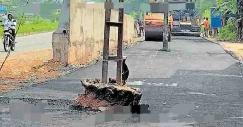 ദേശീയപാത മേൽപാലം നിർമാണം: സർവീസ് റോഡിൽ വൈദ്യുത തൂണുകൾ മാറ്റാതെ ടാറിങ്; വിവാദം